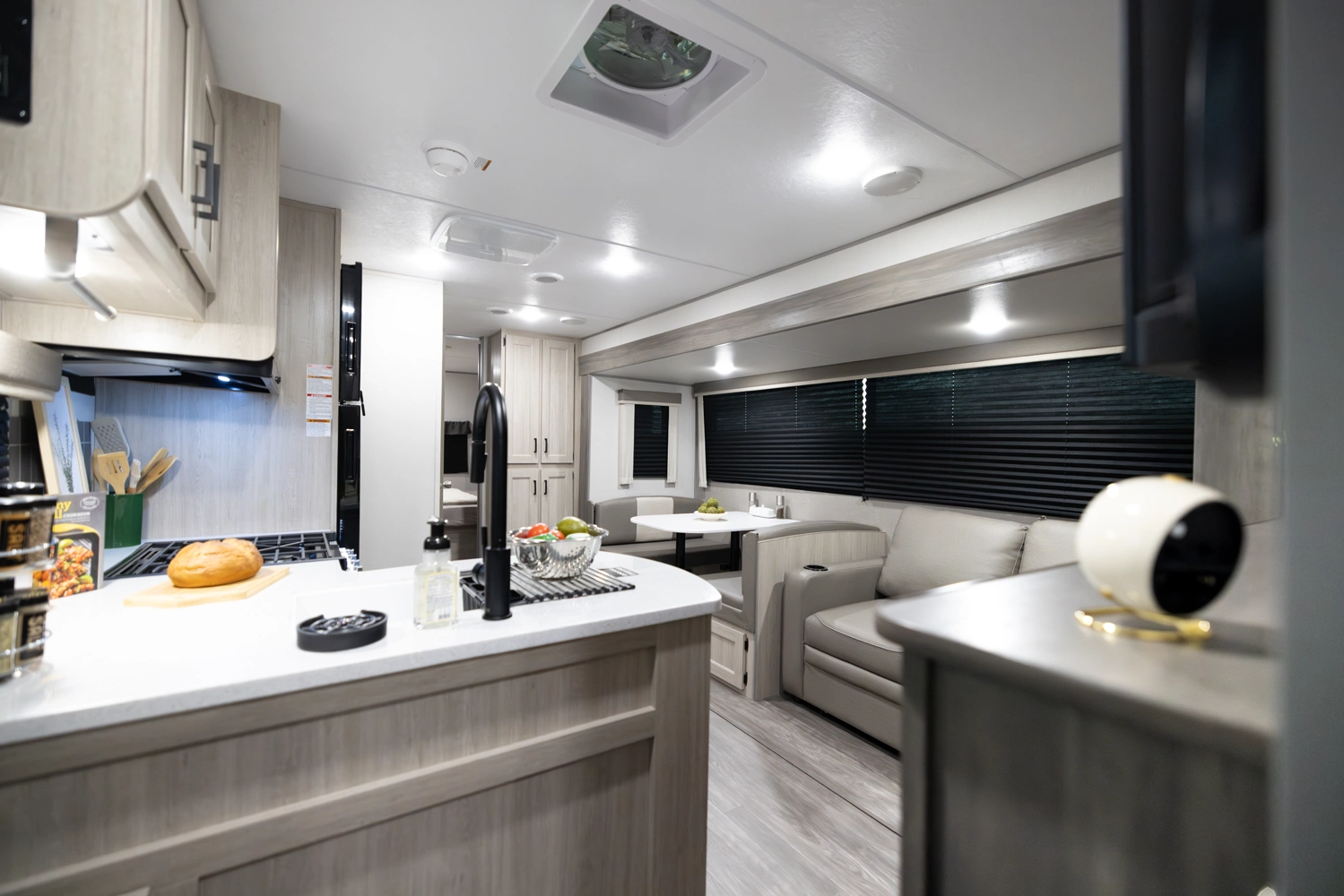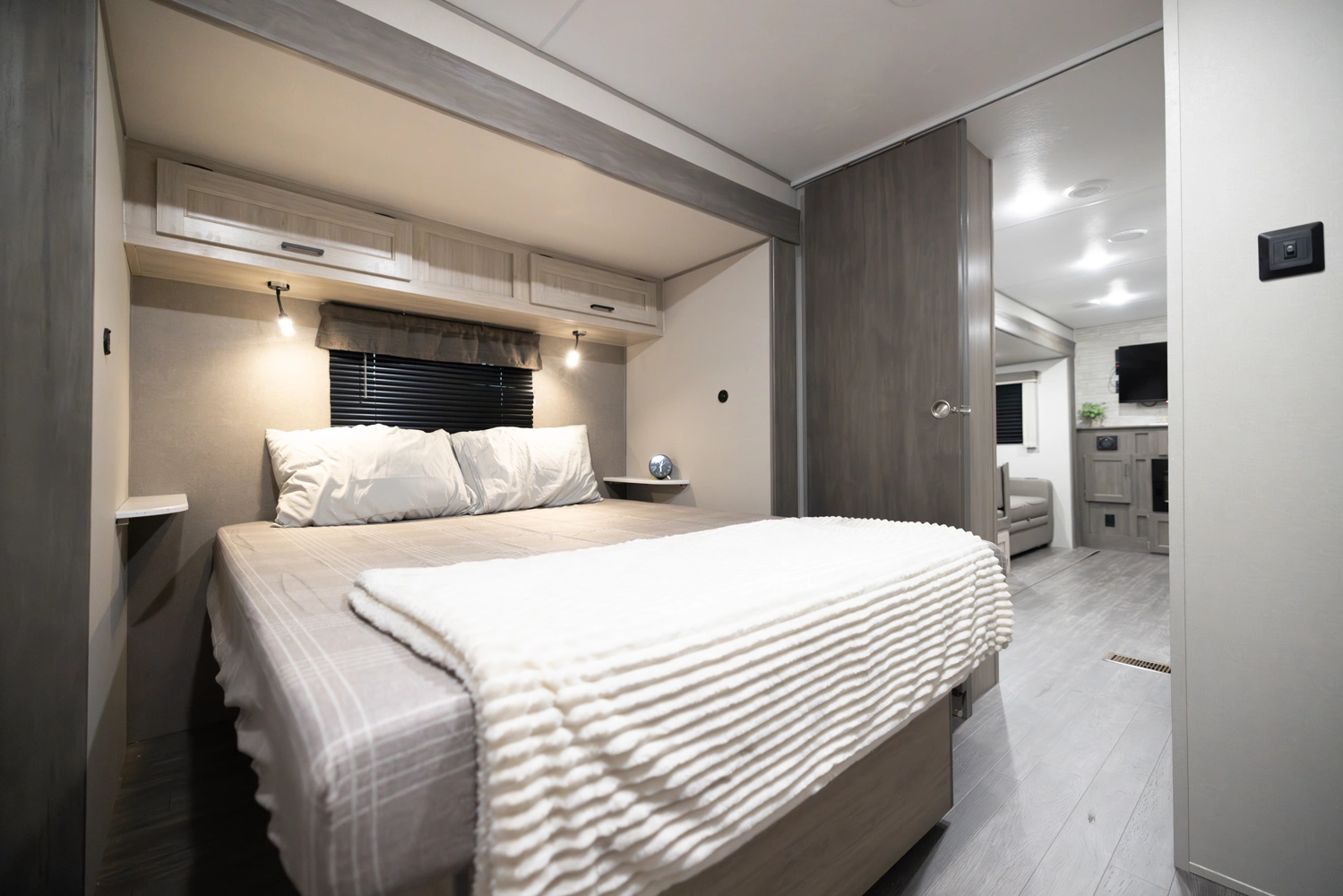 Spacious 37-foot design with two queen beds instead of bunks for couples or guests. Ample storage, durable construction, and comfortable interior make it ideal for extended trips or weekend getaways with friends and family.