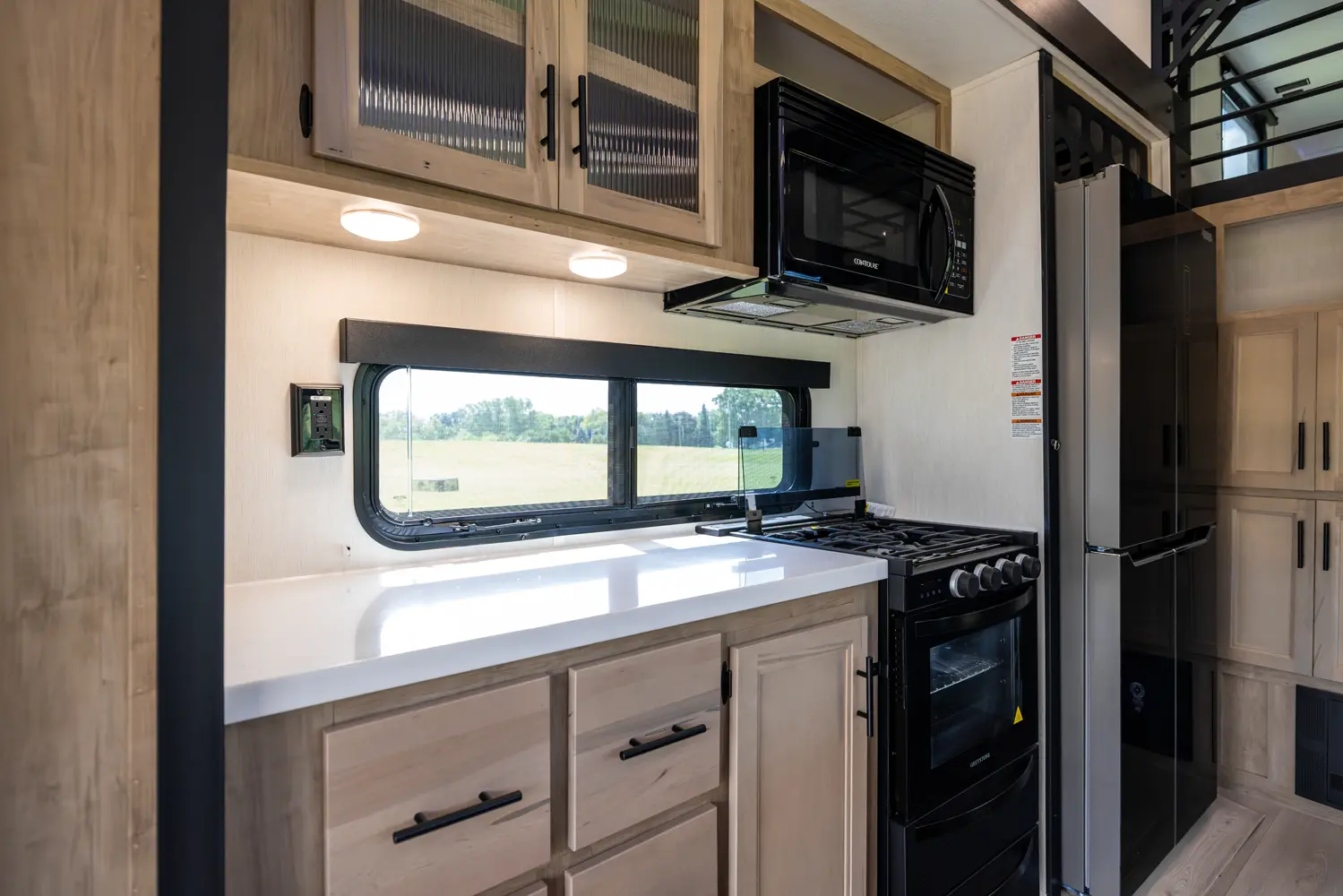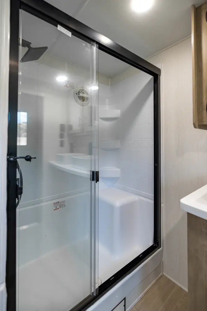 • Blackout Glass, Safety Slam, Friction Hinge Entry Door with Window and Shade Prep (N/A on LP models)
