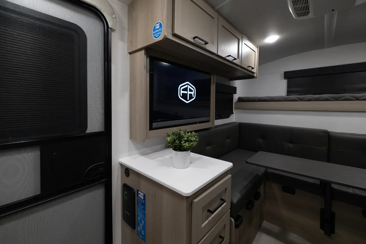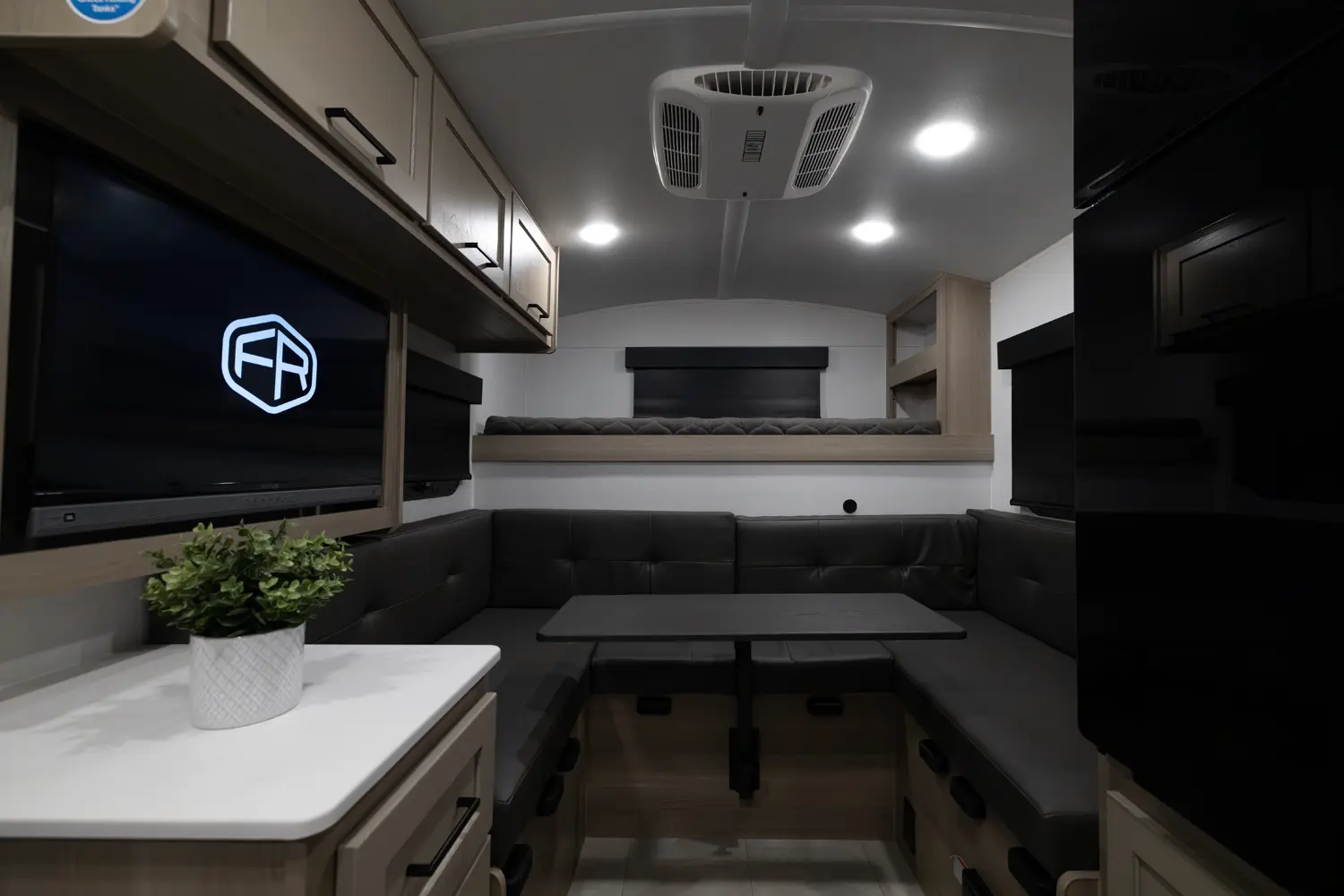 The 15RDG Offers a huge 80" by 54" U-shaped dinette that converts to a bed. A flip-up bunk that doubles as shelf storage when not in use. A thoughtful convection microwave, sink & stove top inside as well as a massive outdoor rear kitchen. With the convenience of a wet bath this model delivers comfort, versatility and fun wherever the road takes you.