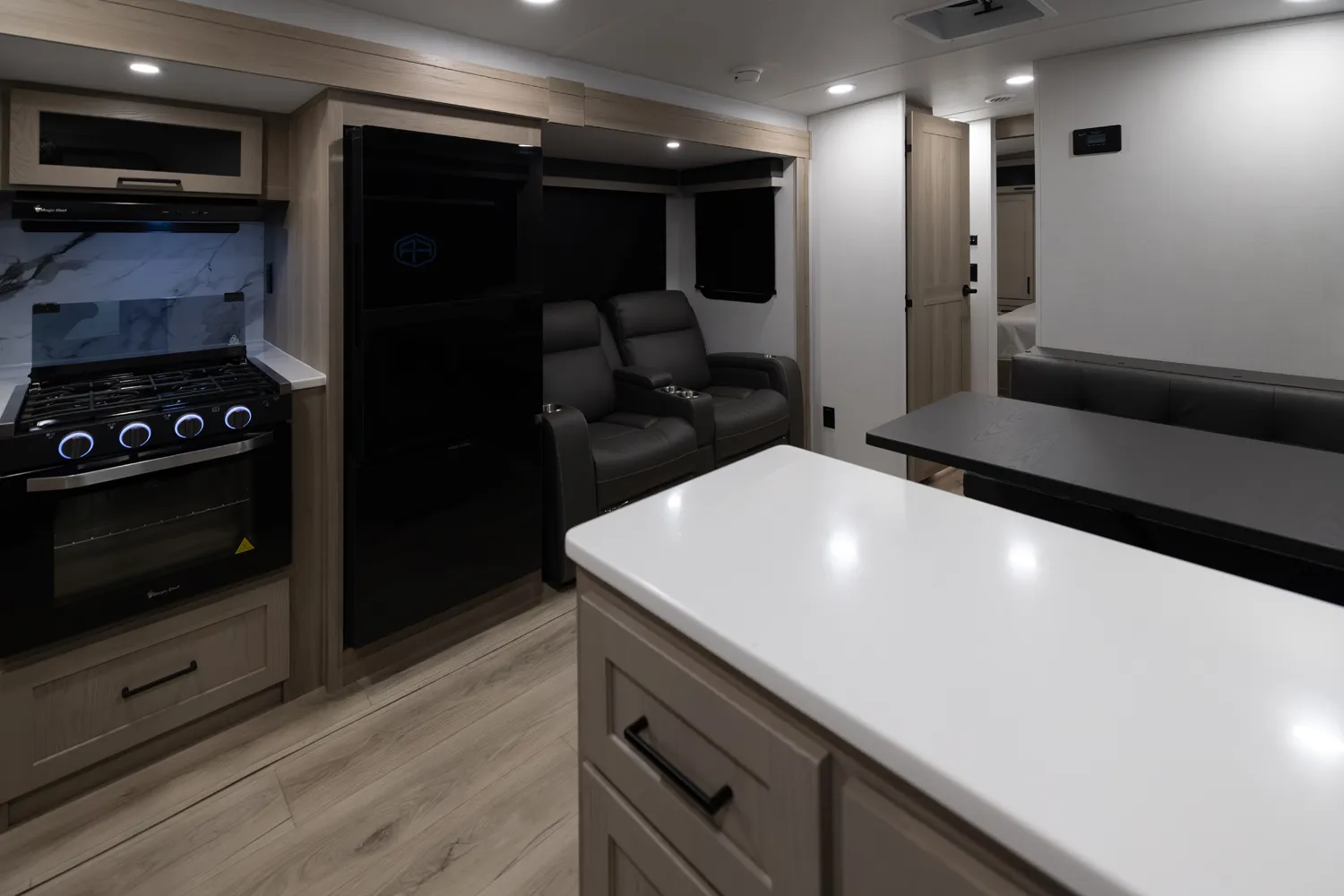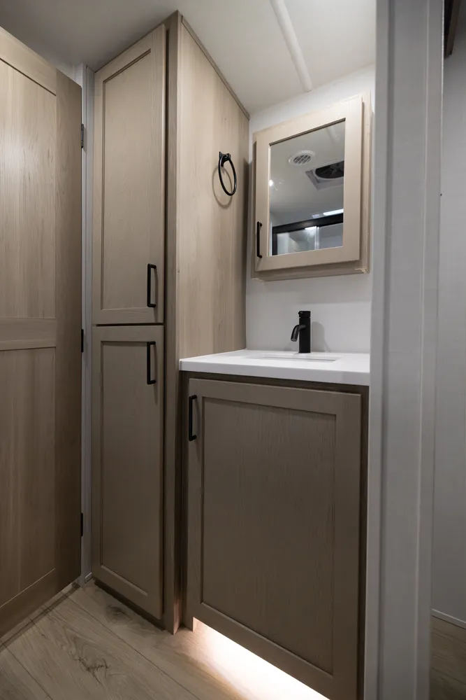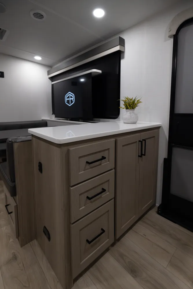 • Platinum Package: Auto Leveling, Frameless Windows, 1800W Inverter, MORryde Strut Assist Entry Step, Dual 30 LP Tanks