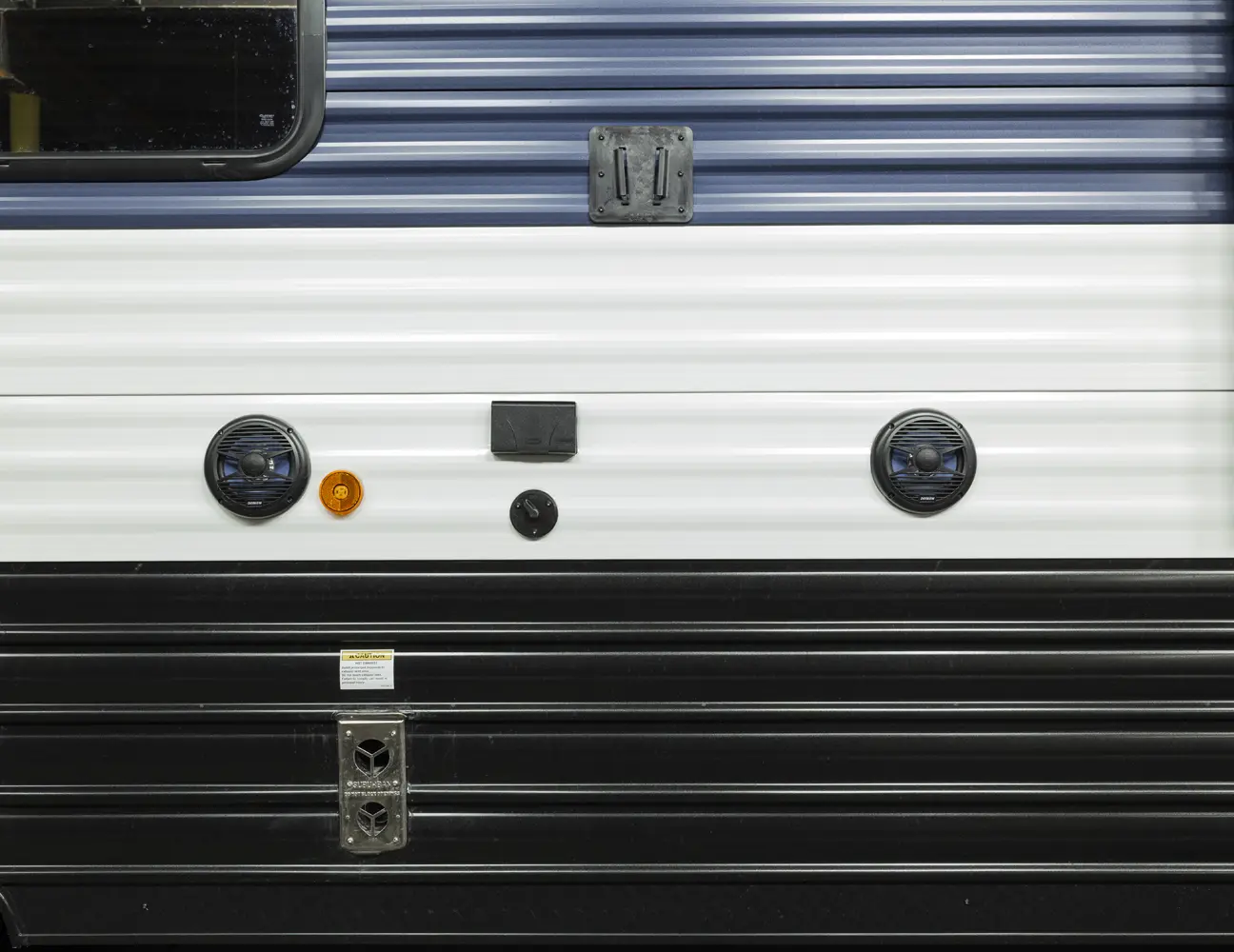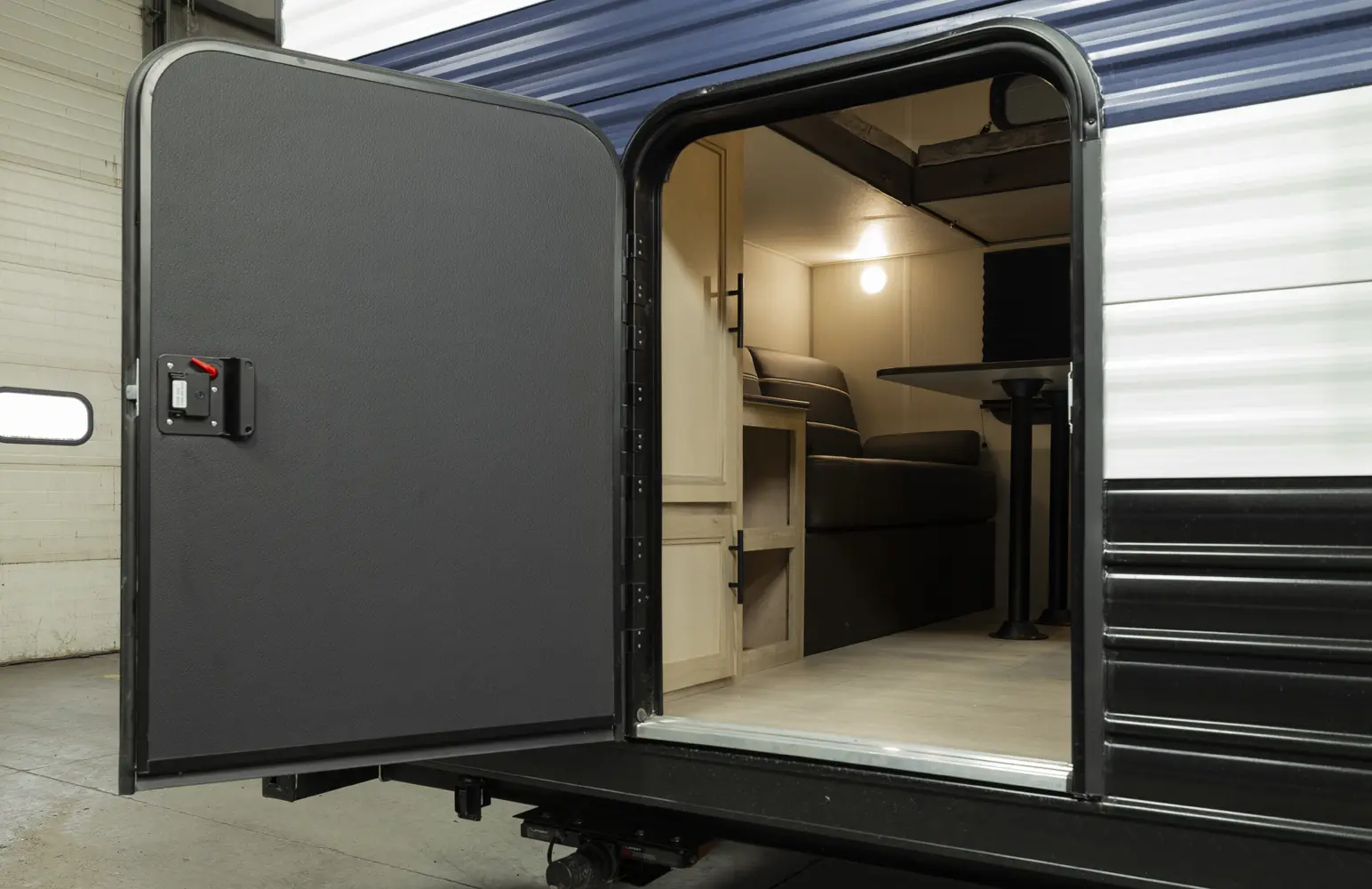 • Blackout Glass, Safety Slam, Friction Hinge Entry Door with Window and Shade Prep (N/A on LP models)