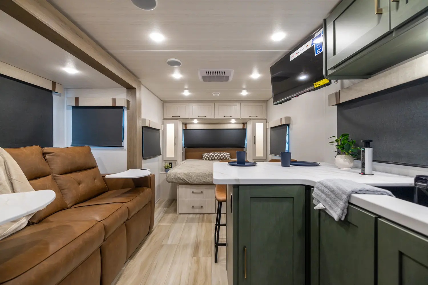 The NB19.6 is a well-designed travel trailer combining comfort and functionality. A mid-living slide-out sofa faces a fully equipped kitchen, while a front queen bed with storage and a rear full bath add convenience. Outside, an exterior kitchen and 16' awning extend living space for outdoor enjoyment. Lightweight and feature-packed, the NB19.6 delivers modern comfort and efficiency in a tow-friendly package.