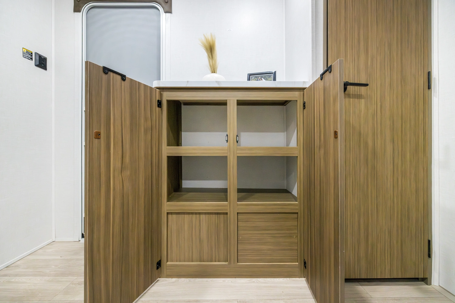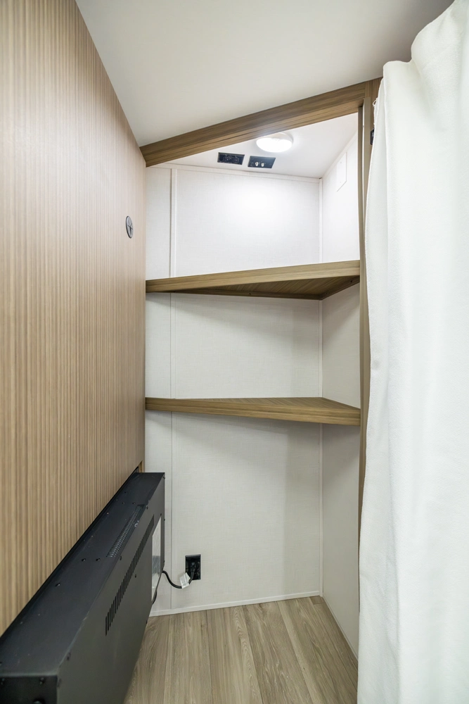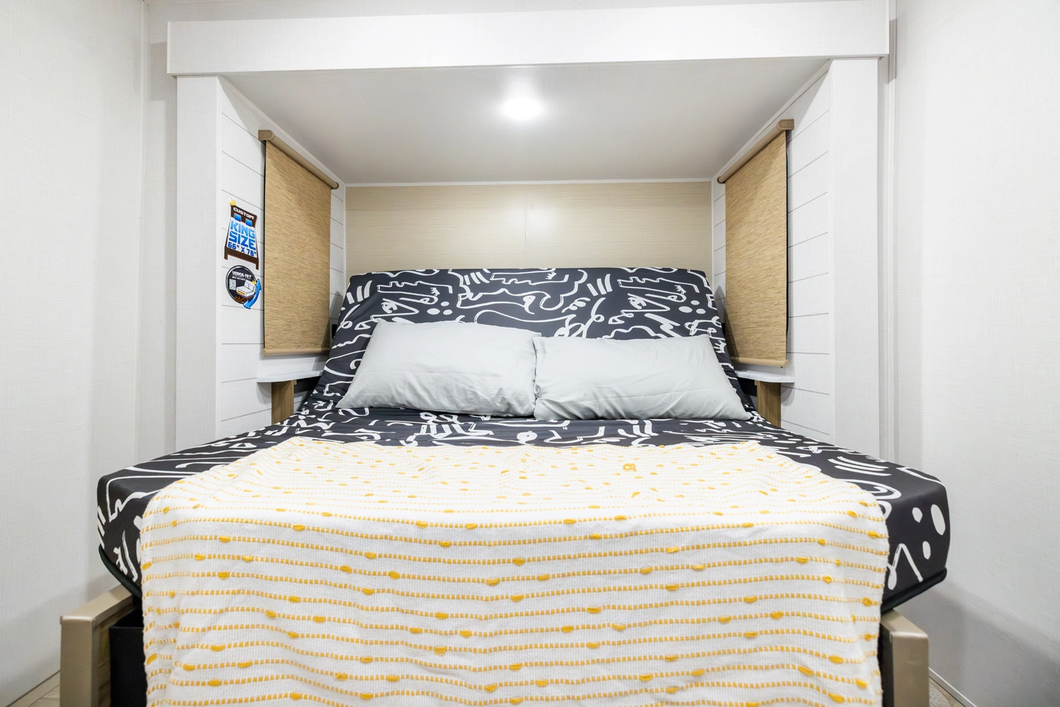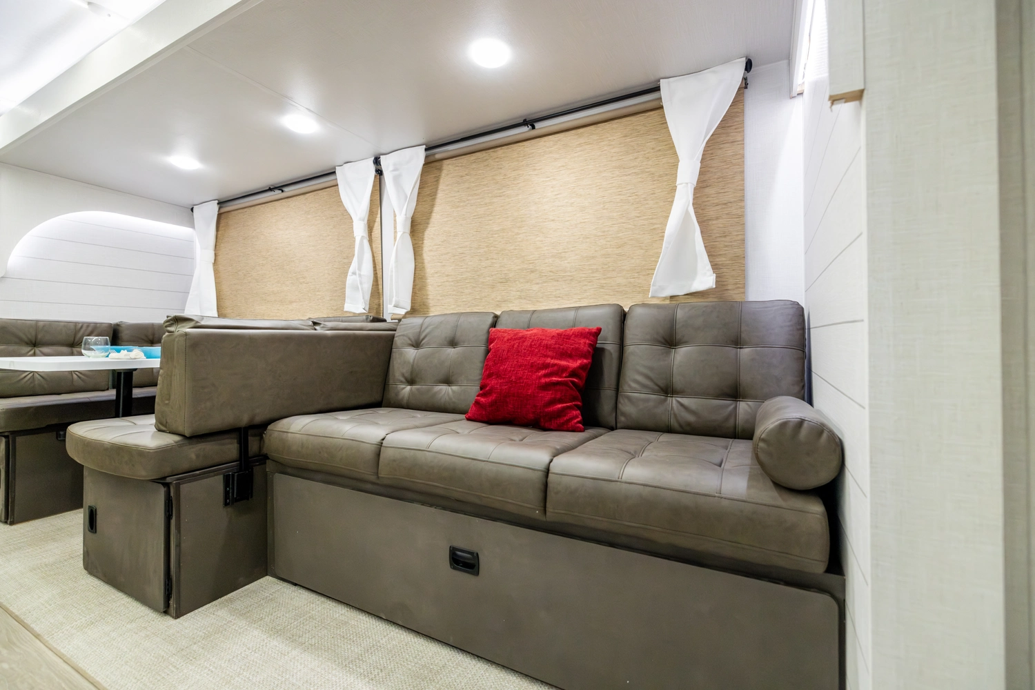 The 36VBDS is a unique, versatile bunkhouse that offers ample sleeping options so you can bring everyone camping! The front bedroom offers both the Versa-Queen and Versa-bunks, while the rear bedroom provides a queen bed, dresser, and closet. The living area features the fantastic Versa-Lounge with panoramic windows for great campsite views. Do not forget about the Stow N Go Storage conveniently below the Versa-Lounge.