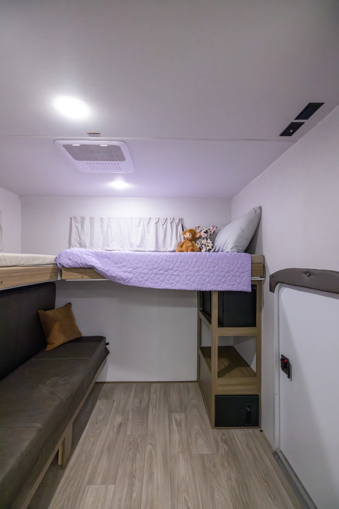 The 29VBUD is a versatile bunkhouse with lots of space for everyone to come along. The front bedroom is designed for a good night's sleep, while the rear bedroom provides the MOST versatile bunk room with the Versa-Bunks and Versa-Queen. Versatility does not stop there as this unit also has the Versa-Lounge and Stow N Go Storage. The well-equipped kitchen and walk-in pantry add the finishing touches to this awesome floorplan.