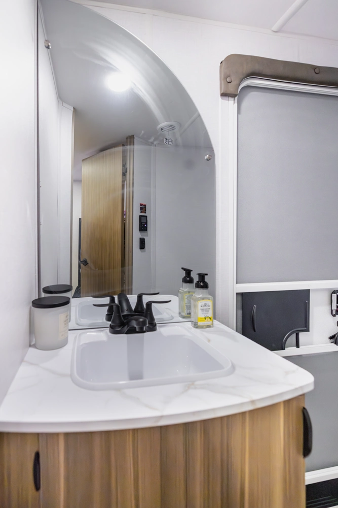 The 263BHXL is perfect for family travels. The rear features two oversized bunks for the kids, with plenty of space to stretch out. The grown-ups will sleep soundly in the front queen bedroom, which includes hanging closets and under-bed Stow N Go Storage. The living area includes panoramic windows and the Versa-Lounge. The kitchen provides a 11 CU. FT. refrigerator and TONS of storage.
